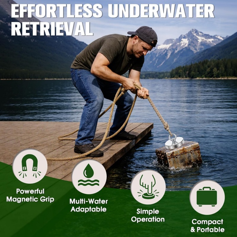 Built with a powerful N52 grade neodymium magnet, it delivers strong magnetic force, making this super strong fish magnet ideal for retrieving heavy ferrous objects in demanding environments such as river fishing and salvage.