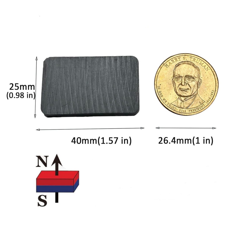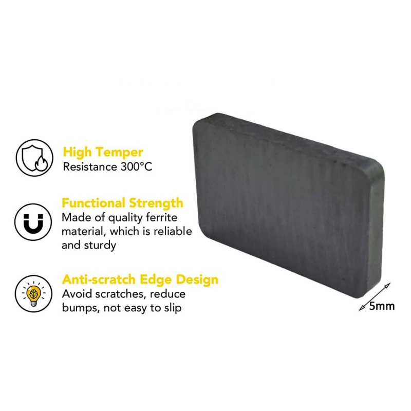 Heavy duty ferrite block magnets are made using a ceramic process, giving them a hard yet durable structure. While tough and slightly brittle, they offer excellent heat resistance and outstanding protection against corrosion and rust—making them ideal for long-term use.