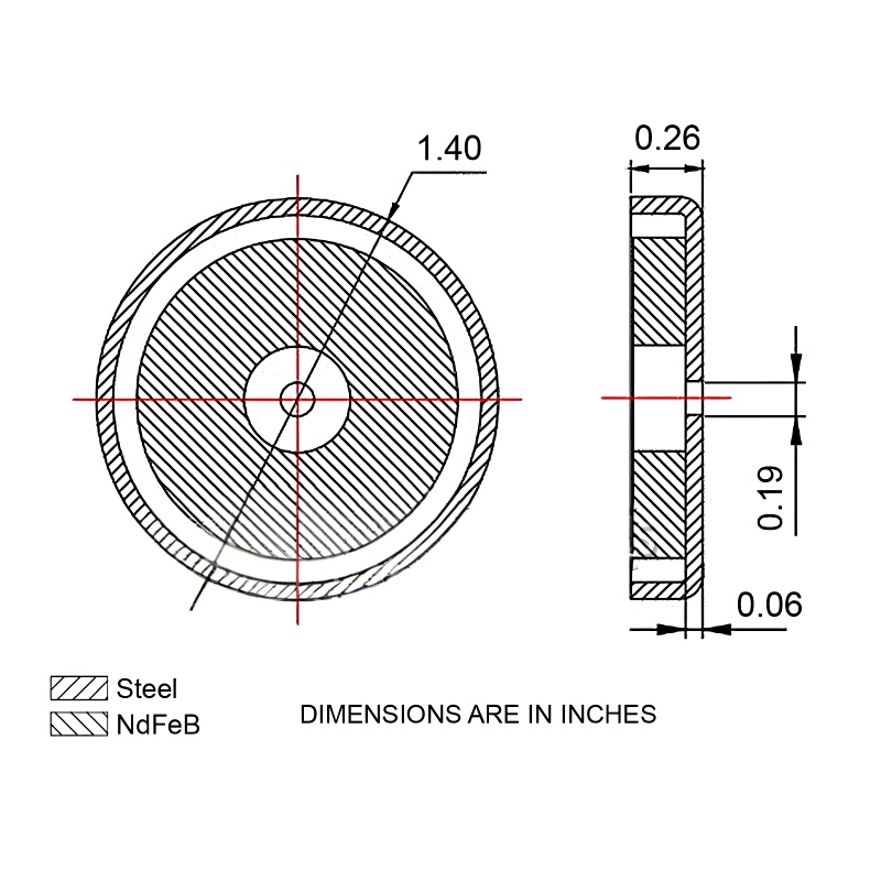 Assembly: stainless steel cup, ferrite magnet