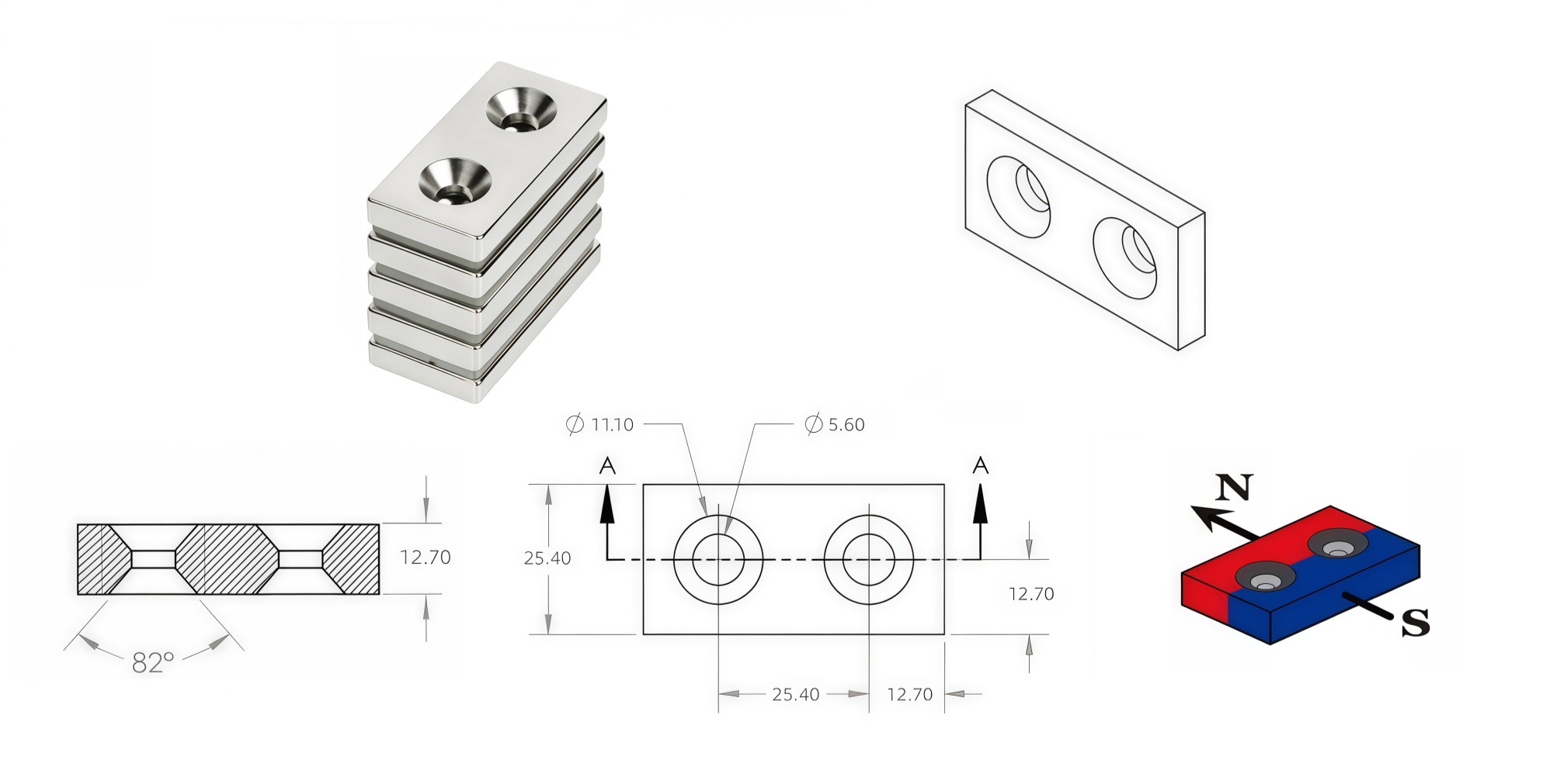 | Magnet Type | Countersunk Block Neodymium Magnet (Double Hole) |