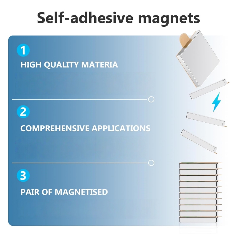 Explore our wide variety of adhesive backed neodymium magnets, available in various sizes and strengths. Each magnet boasts strong adhesion, a durable nickel plating, and easy installation—simply peel off the adhesive backing to stick it on—for example, our 10×10×1mm model.