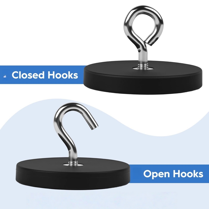 This internal thread rubber pot magnet works with a wide range of accessories, including open or closed hooks, screws, carabiners, and external thread rubber pot magnets. By choosing different attachments, it can easily adapt to various load directions and application needs.