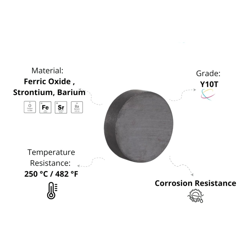 Ferrite round magnets resist demagnetization, corrosion, and rust, maintaining stable magnetic performance over long-term use without loss of effectiveness.