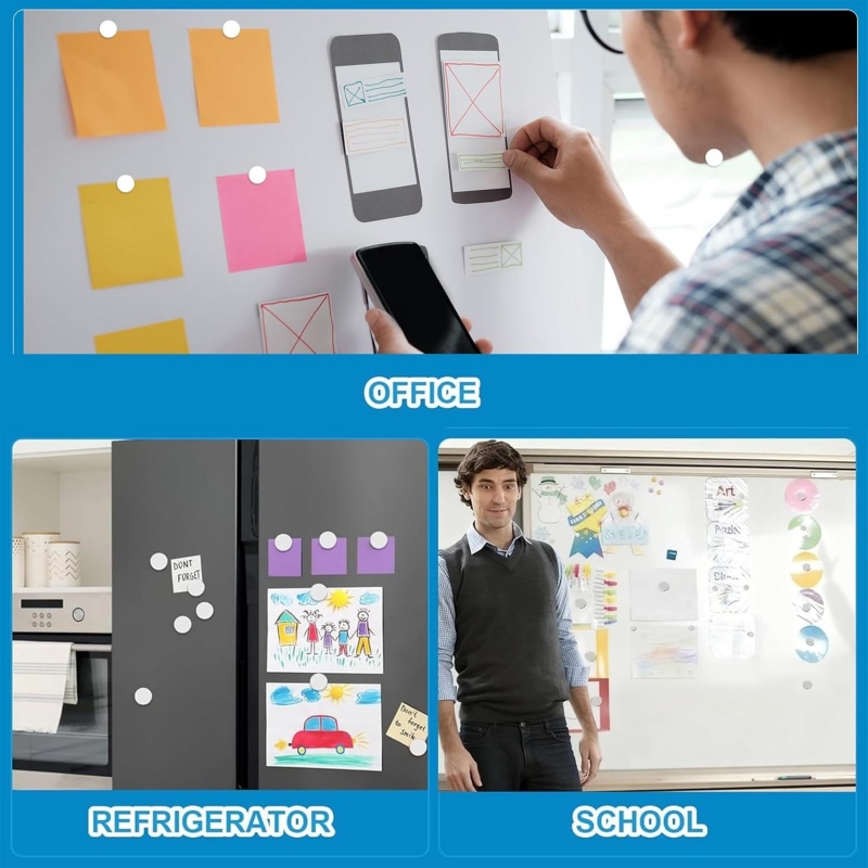 Refrigerator: Ideal for holding shopping lists, photos, and notes on refrigerator doors.