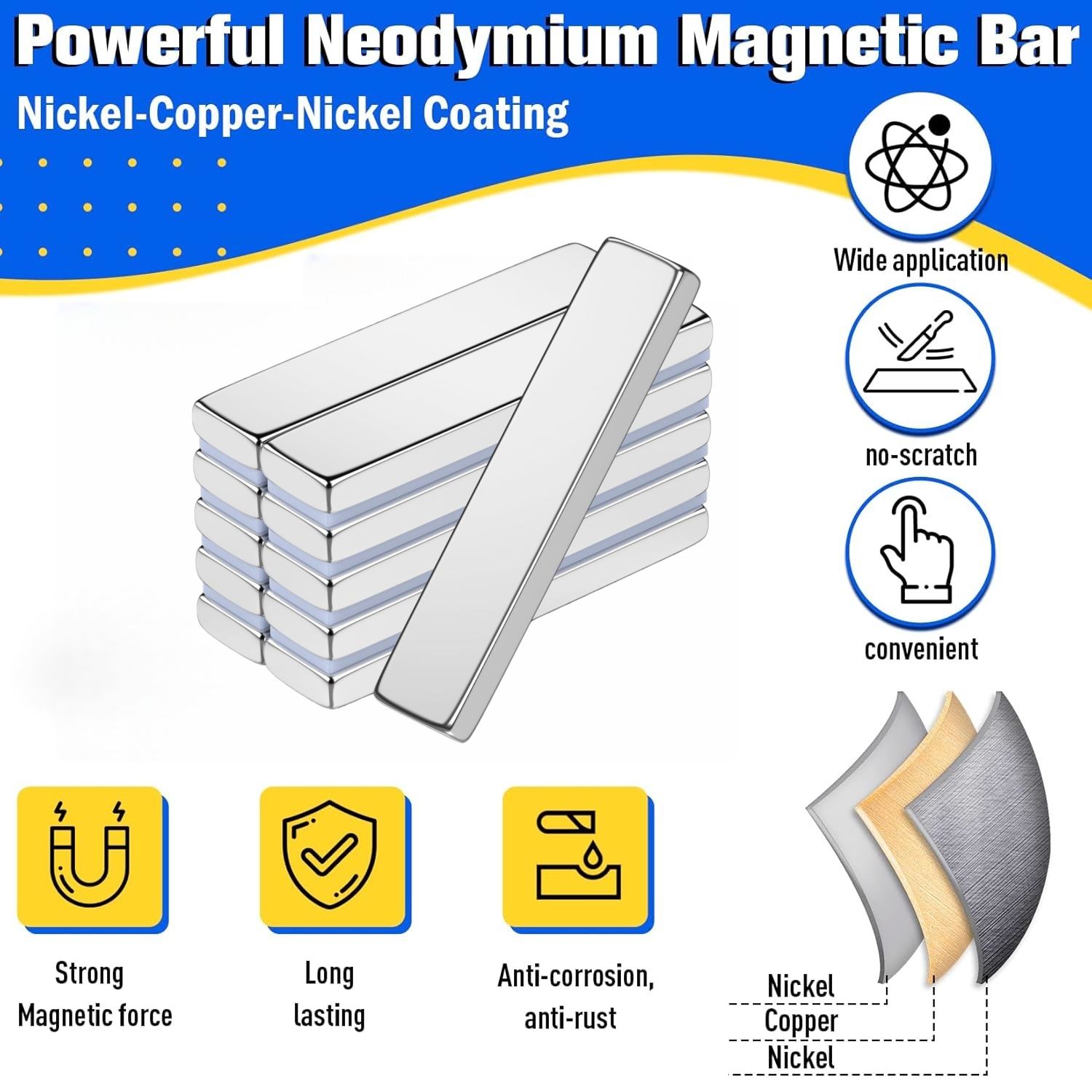 Measuring only 50×10×4mm, this slim rectangular strong neodymium magnet provides a concentrated and uniform magnetic field, making it ideal for precision assembly, applications with limited installation space, and those demanding high magnetic strength and compactness.