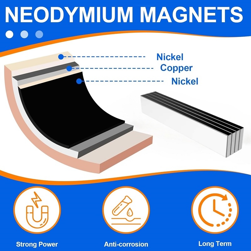 🔹 Durable Nickel-Plated Surface: The bright, corrosion-resistant nickel plating effectively prevents rust and oxidation, significantly extending the lifespan of these high performance neodymium magnets even in harsh environments. The smooth surface also facilitates handling and cleaning.