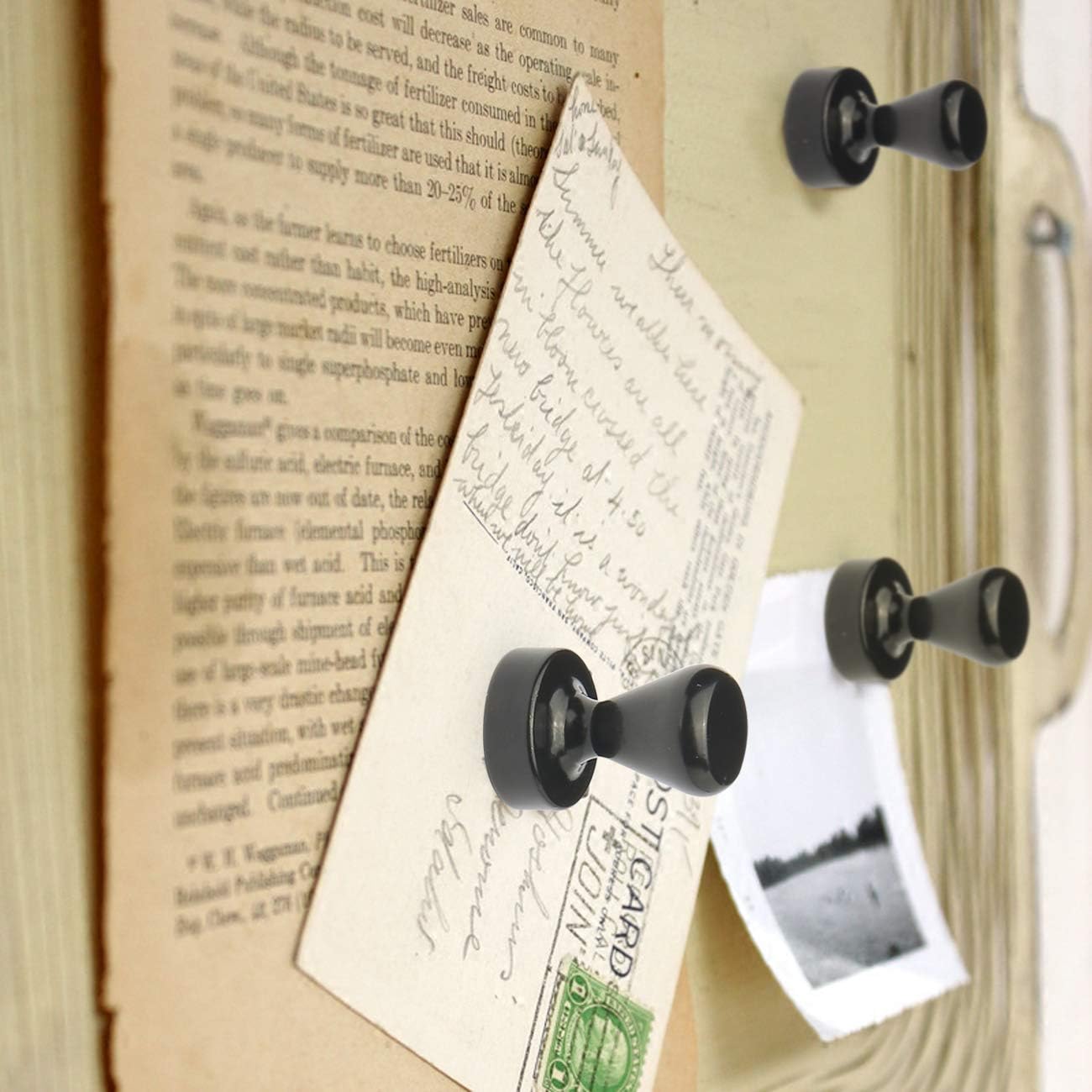 Black magnetic pushpins are a simple, reusable, and stylish way to keep everything neatly in place.