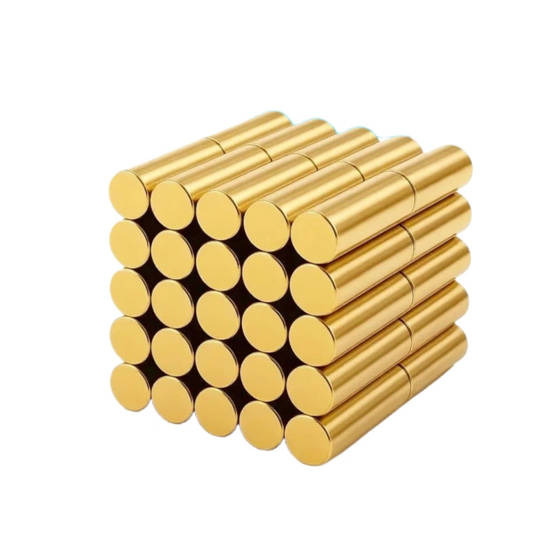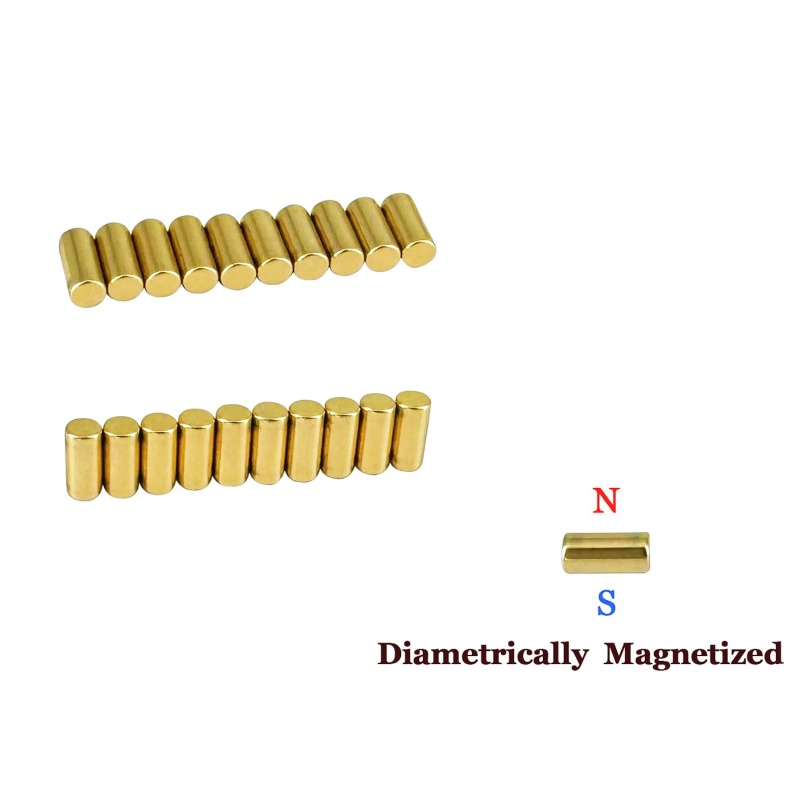 Radial magnetized neodymium cylinder magnets with a durable gold coating for strong performance and a smooth, premium finish.