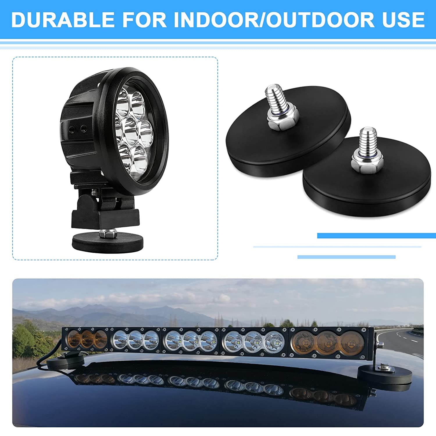 Rubber coated magnets reduce damage from impacts and limit their slippage on smooth surfaces. Suitable for cameras, light strips, automated equipment, and machinery.