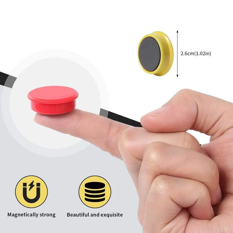 With strong magnets and smooth, scratch-resistant surfaces, these colorful plastic magnets are built for long-lasting use.