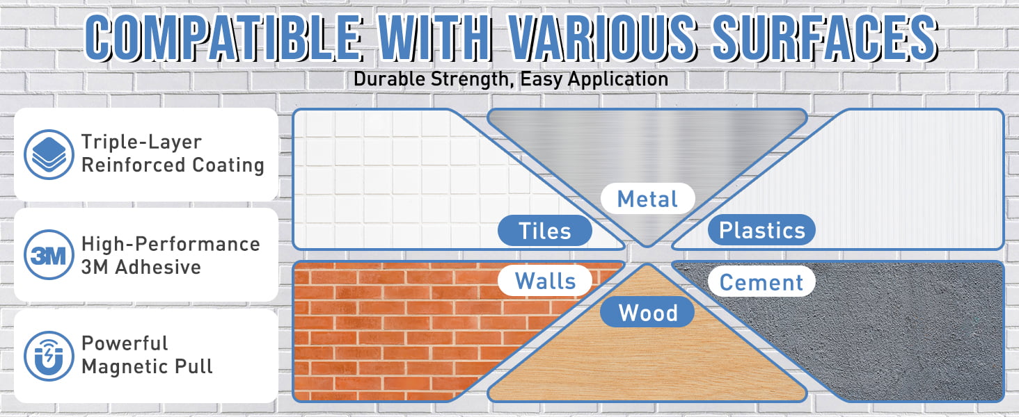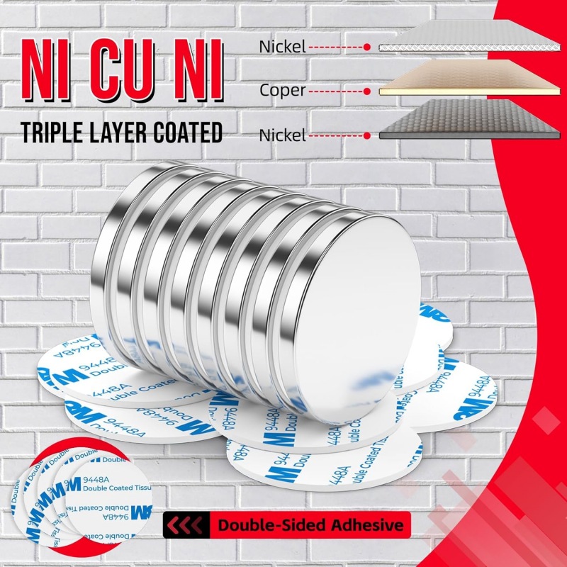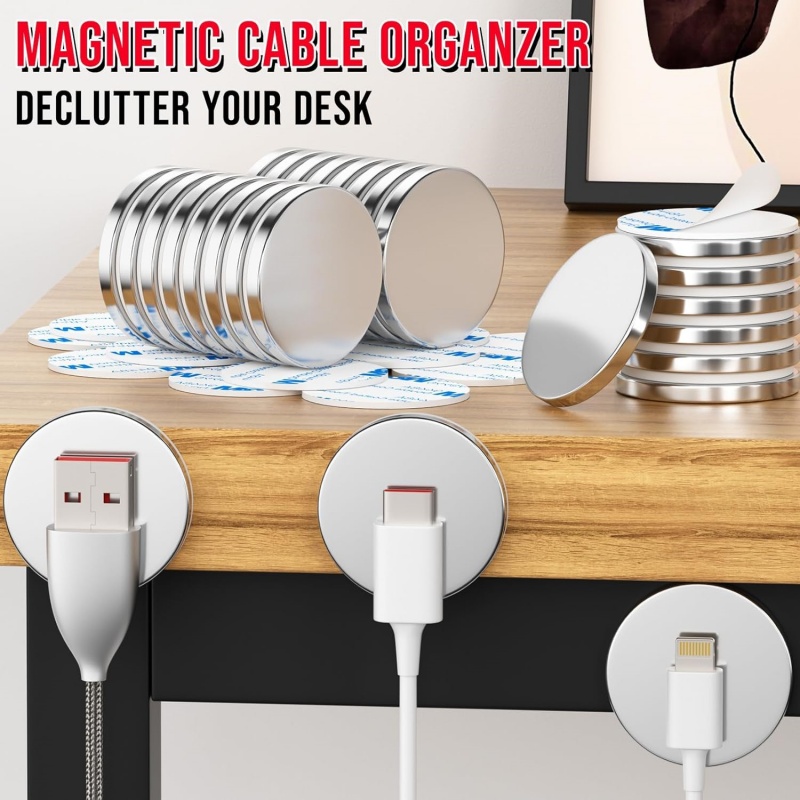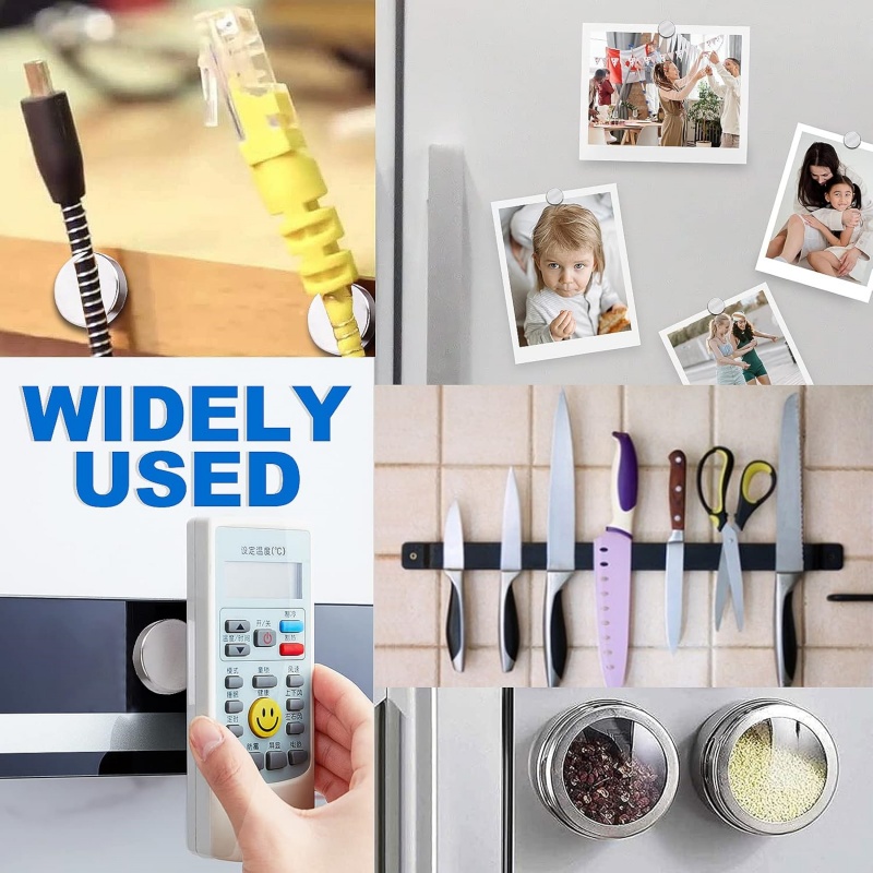 This powerful disc shape adhesive magnet is equipped with high-quality double-sided tape, allowing for easy installation without tools while maintaining a clean and aesthetically pleasing appearance.