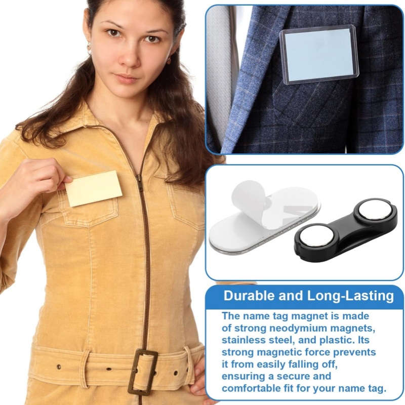 ♦ This premium magnetic name tag is designed for secure and reliable wear, featuring two high strength neodymium magnets that provide strong magnetic attraction, ensuring the tag stays firmly in place during everyday use without slipping or rotating.