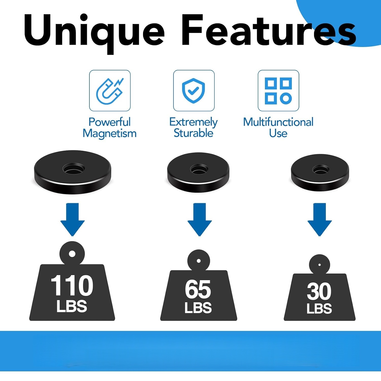 ✅ Strong Attraction – These heavy duty mounting magnets are equipped with high quality neodymium magnets, providing exceptional magnetic force. The stainless steel housing not only prevents the magnets from breaking but also effectively concentrates the magnetic force on one side, allowing them to firmly attract various tools or other metal objects, even in their small size.